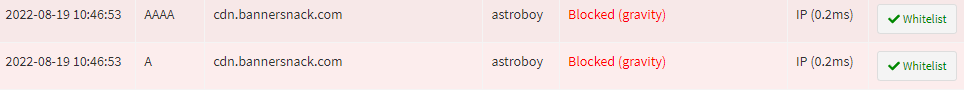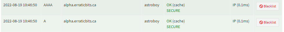 And you can see the request hit the Query Log on the Pi-hole instance.
