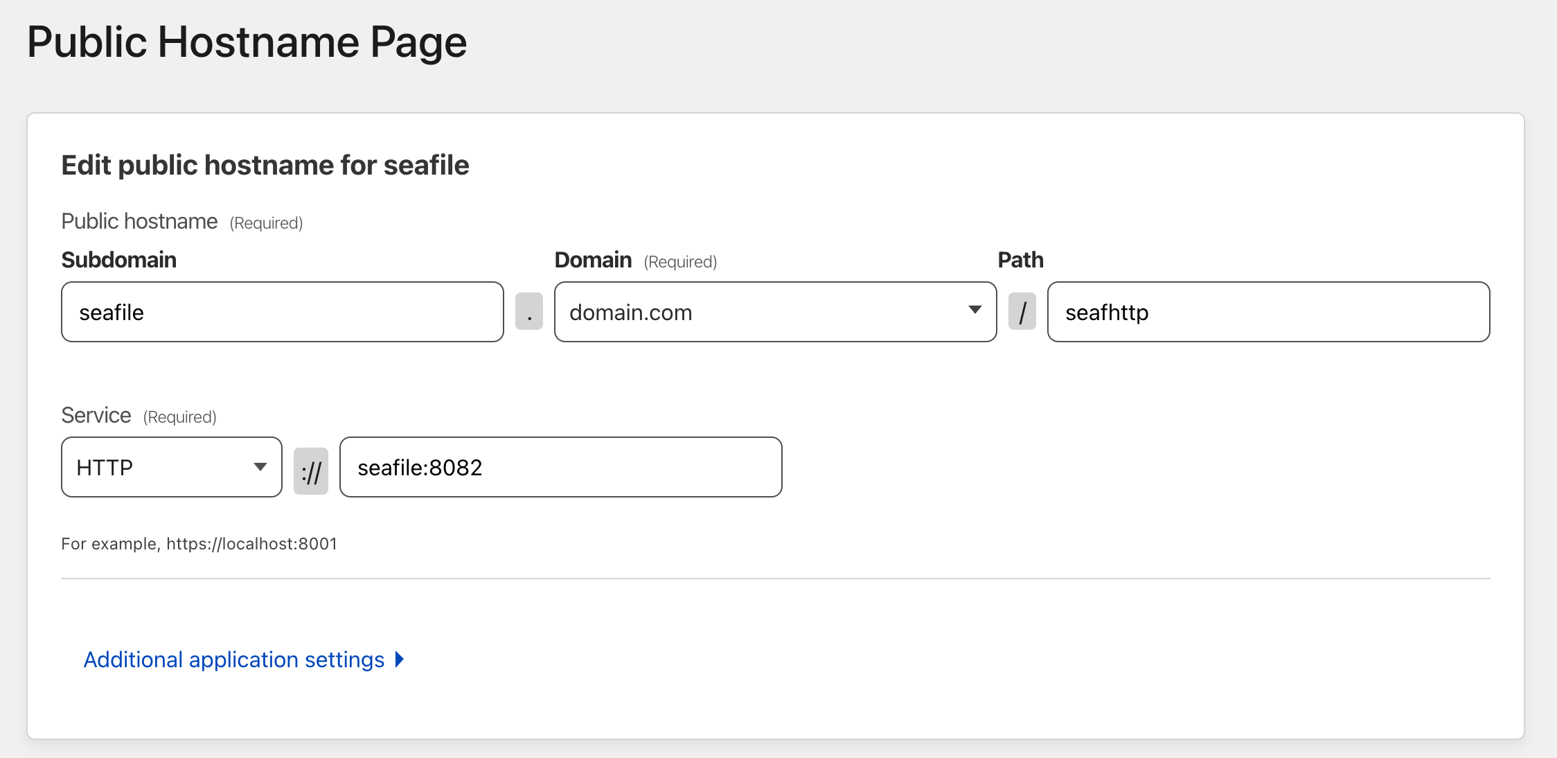 We create two Public Hostnames (Seafile has two services we need to expose):