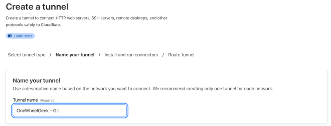 Once that’s done, click on the “Zero Trust” tab and then “Networks” and “Tunnels.” From here, you can create a new Cloudflare “Cloudflared” Tunnel.